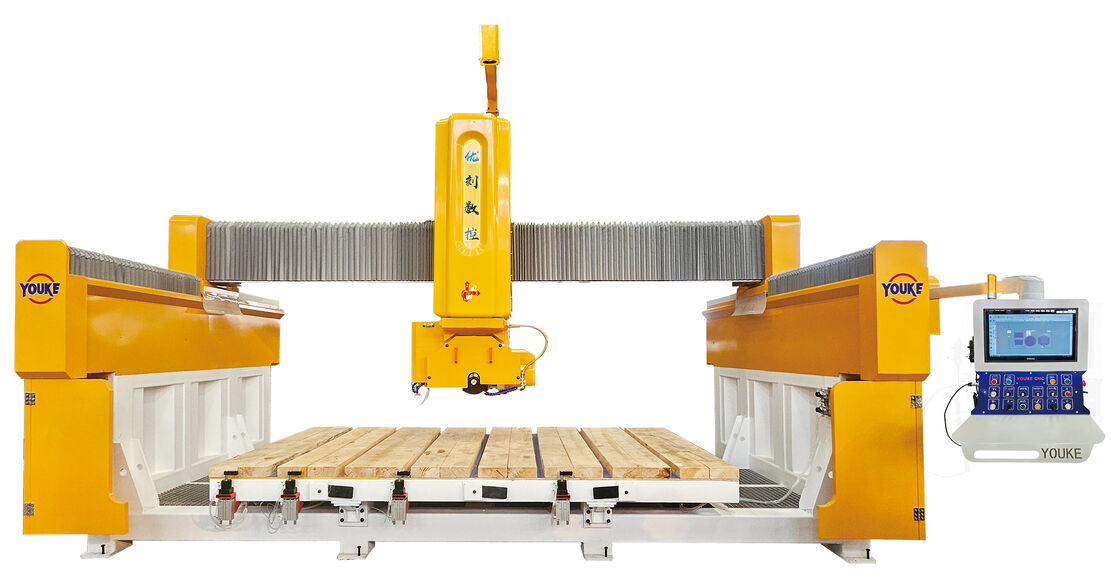 This machine is a specially designed 5-axis bridge cutting machine engineered for precise cutting and profiling of standard slabs and complex, irregular shapes. It is capable of processing a wide range of geometries, including polygons, triangles, fan shapes, countertops, ellipses, diamonds, circles, bullnose edges, arbitrary-angle chamfering, as well as straight and curved lines. With its high cutting speed, exceptional precision, and user-friendly operation, it is ideal for processing materials such as sintered stone, marble, granite, quartz stone, and other irregular or custom-shaped workpieces.